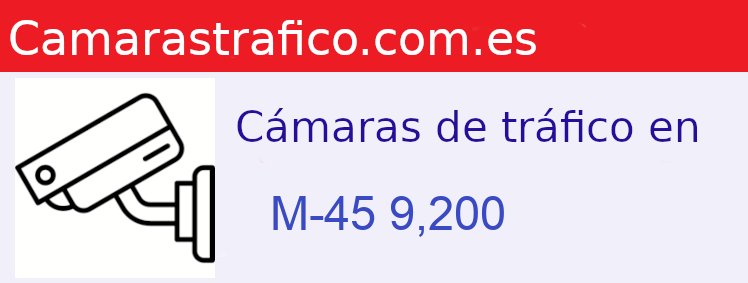 La Siguiente Cámara se encuentra ubicada en el Km: 9,200 de la Carretera o Autovía M-45 en la Provincia de Madrid. La imagen es en directo aunque se actualiza cada pocos minutos. Es posible que en algunos casos, la Cámara no se encuentre operativa, en ese caso, solo queda esperar a que los operarios de la DGT procedan a su reparación.
